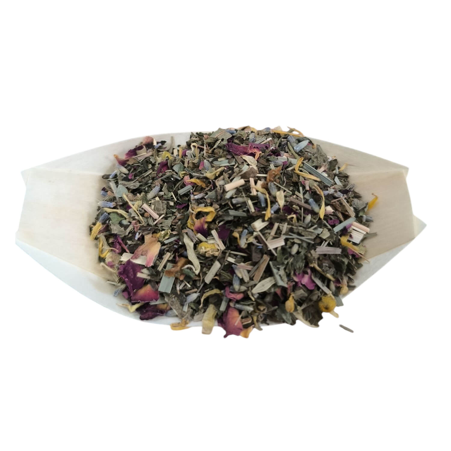 Περιέχει Λεβάντα, Λεμονόχορτο, Μέλισσα, Μέντα, Φραγκοστάφυλλο, Ροδοπέταλα, Πορτοκάλι, Χαμομήλι, Χρυσάνθεμο, Καλέντουλα. Χρόνος βρασμού: 7-10 λεπτά. Θερμοκρασία: 80 °C. Συνιστώμενη δόση: 15 Γρ. / Λίτρο.